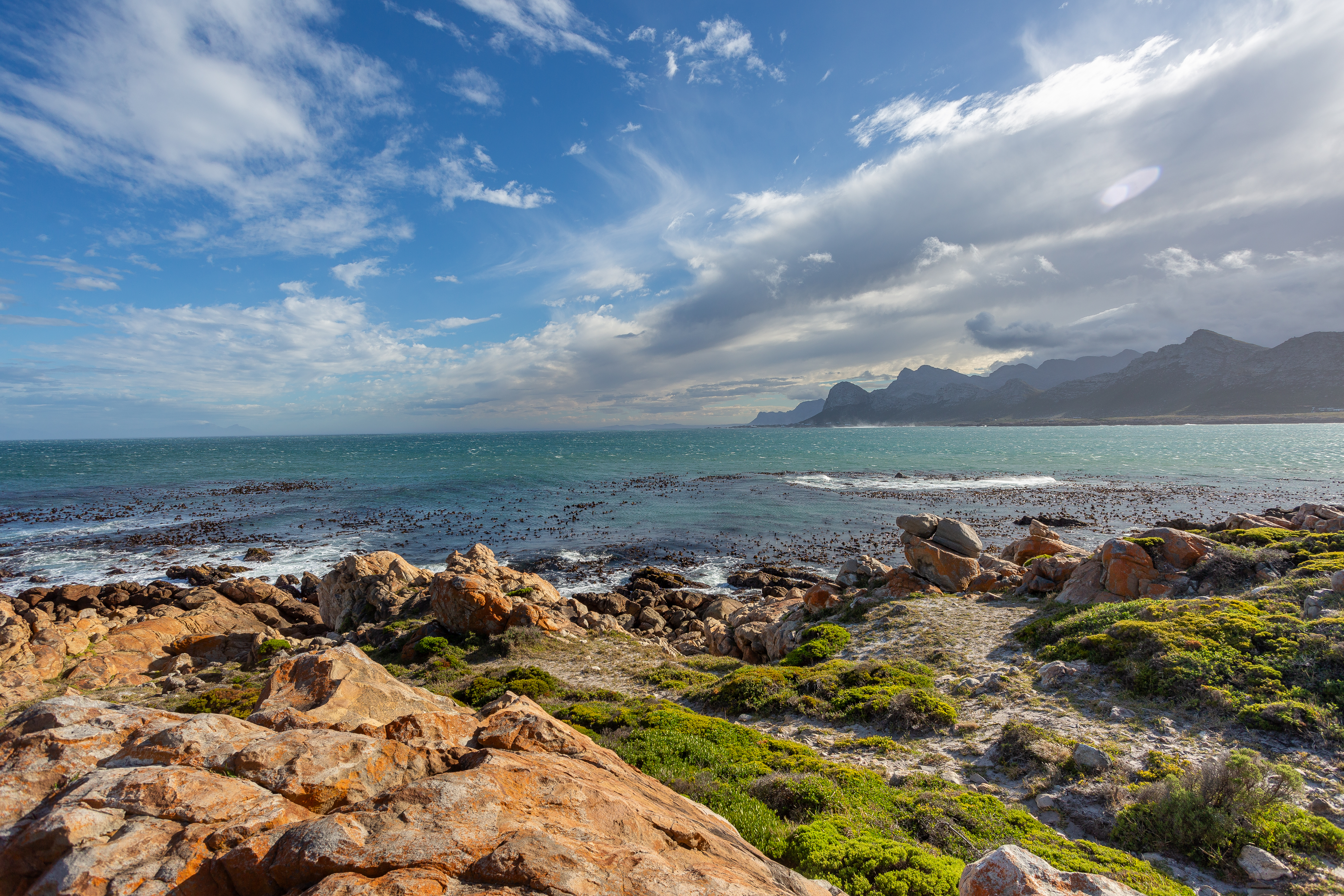 To give you some idea of the route we took on our road trip.As it is now approaching what is regarded as winter down here, we pretty much had most areas to ourselves. Fortunately the weather was very kind to us. The shoreline near Pringle Bay was beautifully rugged and empty.We stopped in at Stony Point Penguin Colony in Betty’s Bay to check out the second largest Cape Penguin colony on the mainland. These fellows are simply too cute.Though you had to be careful as they have complete run of the place and indeed showed up around nearly every corner.While shopping for groceries we came out on our first day to find a flat tire on our rental car. It wasn’t the most positive way to start, however it ended up being a great experience. As it was a weekend, trying to find a tire shop to fix it was not going well until we stopped into a gas station to ask. Well, the attendants were awesome! They had the tire out of the trunk and fixed right there on the tarmac in less than 15 minutes. A wonderful group to bump into.Stopping at Hawston Beach for a lunchtime picnic we found a gorgeous beach with one lonely lifeguard watching out over the empty beach.Of course this area is rife with wineries. We enjoyed exploring the options. The tasting here are done with an outstanding amount of style. None of this standing around a counter. And if you wanted to pair some tasty morsels with your wines, that was an occasional option as well.The week before we started our road trip there had been a massive amount of rain in the region. The big plus of this was the waterfalls all through the mountains and hills were in full flow.Of course we had to stop at Cape Agulhas. The lighthouse is the second oldest operating lighthouse in South Africa and is just down the road from the actual point of Cape Algulhas. This is special as it is the southern most point on the continent of Africa and marks the border between the Indian and the Atlantic Oceans.The B&B we stayed in at Cape Algulhas was across the road from the shoreline which provided a wonderful way to greet the sun in the morning.The furthest east we got was to Mossel Bay. We found these cute little fellows everywhere in the area. They are Rock Hyrax or Rock Dassi. Incredibly cute but apparently quite mean. We chose not to test that warning.For me, the coolest place to visit in Mossel Bay was a cave referred to as the Point of Human Origin. You are only supposed to go in them with a guide and it is worth it.Inside the cave we were shown artifacts, some of which date back over 160,000 years. These are some of the oldest artifacts ever found of what we would call Homo Sapiens. Contemplate that for a while. Those are the remains of tools in the walls of the cave. Simply amazing.Our guide was also good enough to take some touristy shots for us at the mouth of the cave. Part of the tunnel which leads to the caves. A community project of tiles depicting the evolution of our world.Our next stop was to head north to Oudtshoorn. To get there we passed through the breathtaking Robinson Pass.We found an absolute charm of a B&B in Oudtshoon. The yard of De Oude Yotclub had been flooded in the heavy rains but the staff had reclaimed it beautifully.The reason we decided to take this route for our return leg was in order to visit Cango Caves.The interior of these caves are spectacular. They used to hold concerts in the main cavern but sadly people were stealing the stalactites so now you only get in by guided tour.They work hard to balance preserving the caves with educating people to the beauties of our world.The roads on the Garden route are superb. It makes exploring the region a joy.There were plenty of spots to stop on the inland route to enjoy the sights. This was on a short side trip through Tradouwpas.Tradouwpas is just south of the town of Barrydale. The winding road is a must if you are ever in this area. It is just off the scenic Route 62.While in Barrydale we checked out the Joseph Barry Distillery. I am not usually a brandy drinker, but this stuff was golden. Fortunately we walked there from our hotel as their idea of samplers is very generous.We wrapped up our 1600km road trip by swinging through Paarl on our way back to Cape Town. You had no trouble understanding why so much wine comes from the region. There were vineyards everywhere.